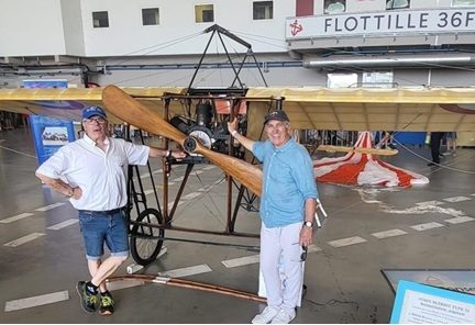 Parmi cette foule, un groupe de Vieilles Tiges du groupement Antoine de Saint Exupéry composé en partie d’anciens marins avait abandonné son territoire afin de participer à cette grande fête et notamment admirer la magnifique réplique du Blériot XI conçue par Pascal Coularou, également membre de ce groupement Saint Exupéry.