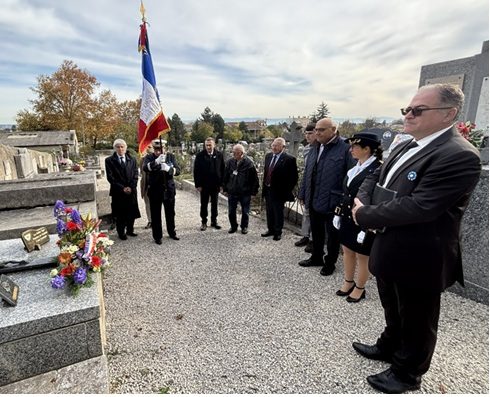 A l’occasion de la cérémonie du 11 novembre un petit groupe des VIEILLES TIGES du groupement SAINT EXUPERY s’est rendu à TOURNON SUR RHÔNE pour rendre hommage à l’IPSA Germaine L’HERBIER MONTAGNON. C’est en présence de Madame la Sous-Préfète de l’Ardèche, de Monsieur le Maire de Tournon sur Rhône accompagnés d’élus municipaux, et du porte Drapeau du groupement Saint Exupéry, que Matthieu ROCHET jeune adhérent des Vieilles Tiges a déposé une gerbe sur la sépulture de cette valeureuse infirmière.