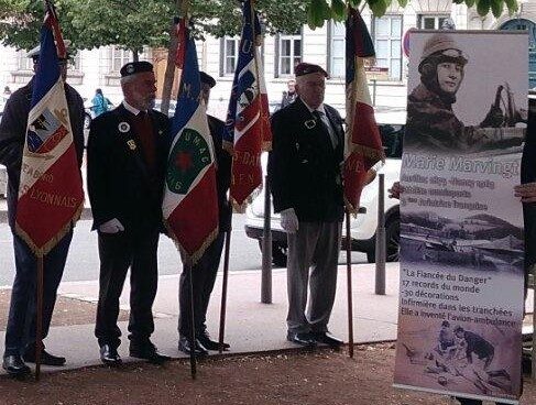 « Marie MARVINGT, native d’Aurillac en 1875, Surnommée « La Fiancée du danger », connue au début du siècle dernier pour ses nombreux exploits sportifs en alpinisme, ski, cyclisme, tir sportif, et natation, est la première femme à terminer le Tour de France en 1908, sans être engagée officiellement dans la course. Aéronaute et aviatrice, trois mois après Louis Blériot elle est la première femme à rallier la France à l’Angleterre à bord d’un ballon baptisé « L’étoile filante », de Nancy à Southwood en 14 heures et 30 minutes, survolant le Luxembourg, la Belgique, l’Allemagne, la Hollande, et la Mer du Nord. Infirmière et correspondante durant la guerre de 14/18, voulant vivre le quotidien des Poilus dans les tranchées, elle passe 47 jours sur le front déguisée en homme, avant d’être démasquée. Pendant la Seconde Guerre mondiale, elle invente un nouveau type de suture chirurgicale minimisant le risque d’infection sur le champ de bataille. Tout en continuant d’accumuler les exploits sportifs, elle passe son brevet de pilote d’hélicoptère. Avec ses trente-quatre décorations, dont la Légion d’honneur et la Croix de guerre avec palmes elle est la femme la plus décorée de l’histoire de France. »