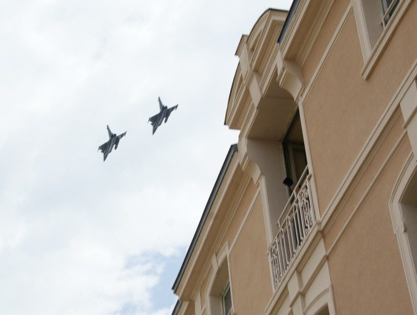 Passage des deux Rafale sur le château de Saint Ex